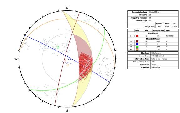 Cálculo de estabilidad de desmontes en roca: Análisis cinemático de cuñas